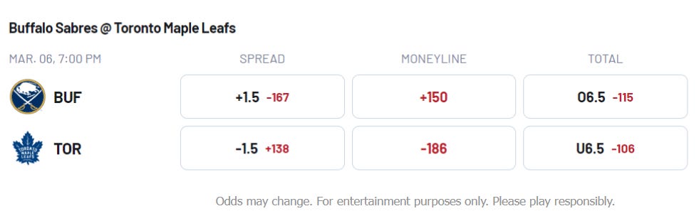 Maple Leafs picks and props vs. Sabres March 6